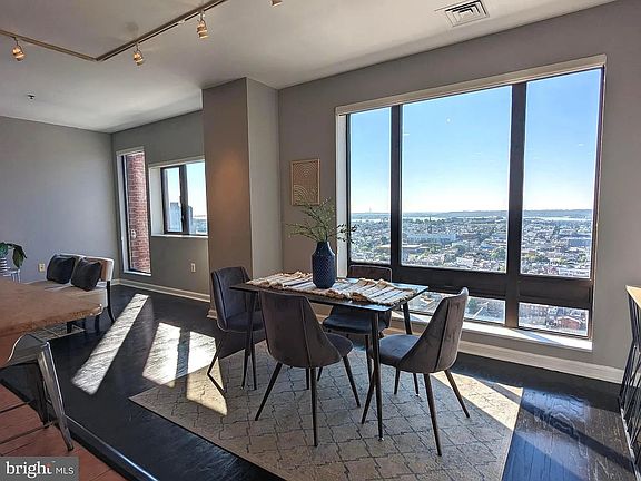 Perched on the 20th floor of one of Baltimore's premier residences, this meticulously renovated home offers a rare opportunity to experience elevated city living at its finest. From the moment you enter, you'll be captivated by soaring ceilings, rich hardwood floors, and sweeping panoramic views of the Inner Harbor and beyond.