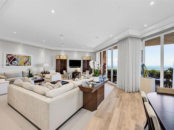 A true paradise in the sky! This stunning penthouse features a private elevator opening directly into an elegant, meticulously renovated space, offering endless views of Biscayne Bay. The unit flows effortlessly from east to west, capturing vistas from every angle. Designed for seamless living featuring 11-foot ceilings & state-of-the-art customized electronics, it exudes both warmth & sophistication. The oversized primary bedroom provides a luxurious retreat while the 3rd en-suite bedroom is currently used as a library. Resort living at the Gables Club offers unparalleled privacy & security. Enjoy exclusive amenities including a private restaurant, 4 tennis courts, luxurious spa & gym facilities, & comprehensive concierge services. Experience the perfect blend of relaxation & convenience.