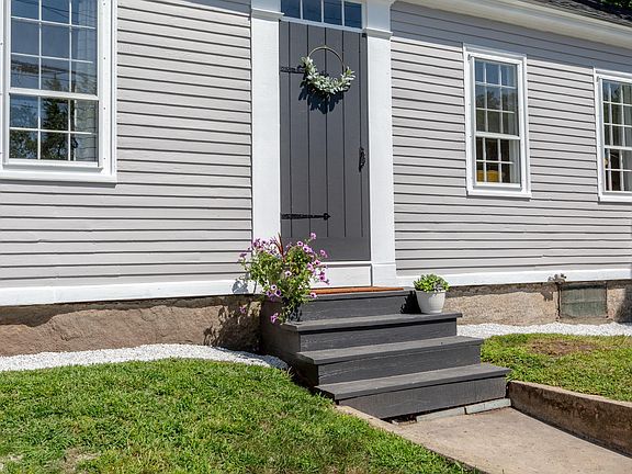 All of the antique charm with all of the modern day conveniences! The James Pray House located on historic Elm Street right in the heart of Topsham. Built in 1810, the federal-style cape has a separate carriage house that was built in 1860. Inside you will find a light and bright living room featuring eight and a half foot ceilings and an oversize fireplace with original beehive oven. In the back ell there's a spacious kitchen that has been updated with stainless appliances, maple cabinets and honed granite counter tops including farmhouse sink. The ceilings here are vaulted with original hand hewn beams featured prominently. At the back of the ell is a room currently used for exercise equipment, but is multi-functional. It could be a huge mudroom or playroom - many possibilities. The sunny master bedroom located on the first floor and a full bathroom is adjacent. There is also a space that houses the washer dryer on this floor which would be a lovely little office. Upstairs are two large bedrooms. A new large deck sits in the corner of the house and the ell overlooking the backyard with it's multi-level platforms and playhouse. The carriage house is freshly painted and will hold one car plus all of your toys and equipment. Walk to schools, the library, Foreside recreation area or even downtown Brunswick in minutes.PLEASE SUBMIT ALL OFFERS BY SUNDAY AT 5PM WITH RESPONSE DATE OF MONDAY AT 5PM.