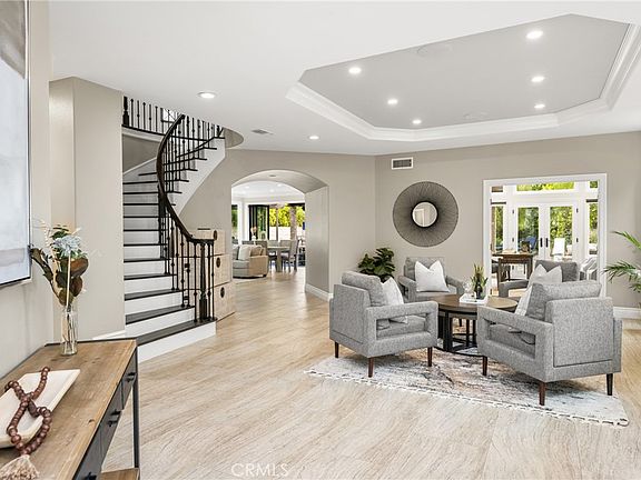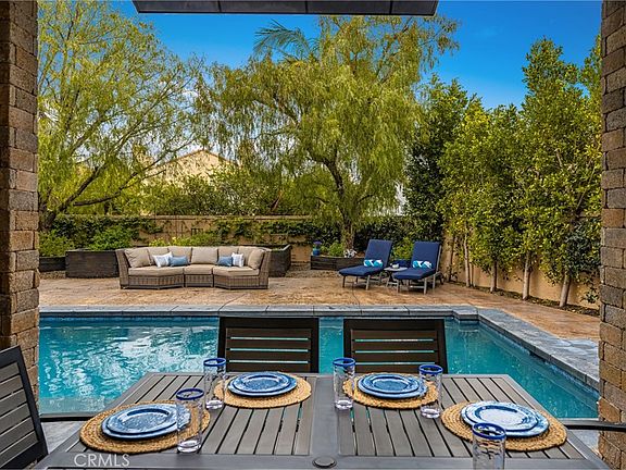 This is the one you've been waiting for — THE CROWN JEWEL OF FOOTHILL RANCH! Experience the exceptional luxury of this one-of-a-kind property with an expansive backyard oasis reminiscent of a 5-star resort. This newly remodeled masterpiece blends sophistication and exquisite architectural design, tailored for the discerning buyer. Featuring five en-suite bedrooms, 5.5 bathrooms, two fireplaces, and 4,000 sq. ft. of elegance and luxury. This entertainer's dream home welcomes you with a grand entrance into the formal living room, warmed by a fireplace and highlighted by a sweeping staircase. Custom-tiled flooring flows seamlessly through the open spaces, leading into the heart of the home — your dream kitchen. Top-of-the-line appliances include a Wolf dual-range six-burner stove, convection oven, Wolf Pro wall-vented hood, Wolf convection steam oven, Frigidaire Professional refrigerator, Bosch Silence dishwasher, and an in-wall pot filler. These complement the oversized island with seating. Quartz countertops, a custom glass backsplash, and a walk-in pantry complete this culinary haven. The family room and dining area embrace the open-concept floor plan, enhanced by expansive folding glass doors that seamlessly connect the indoor and outdoor living spaces. Guests will appreciate the downstairs en-suite bedroom, while the separate dedicated office offers serene views of the beautiful backyard. The primary suite with a retreat boasts a two-sided fireplace, a remodeled bath with separate vanities, a soaking tub, a custom spa shower with multiple shower heads, and a large walk-in closet with custom organizers. A loft with a media center and a laundry room serves the three additional spacious en-suite bedrooms. Custom upgrades include all-new doors, vinyl windows, a whole-house whisper fan, seller-owned solar, 15-foot retractable wall-to-patio folding doors, and two variable-speed heat pumps with zone ducting. The home automation system distributes audio/video and integrates lighting, security, HVAC & pool controls w/ a touch. No expense was spared in the recently renovated resort-style entertainer's backyard, with a gorgeous pool and spa, a custom outdoor kitchen with a BBQ, a bar with a refrigerator, a warming tray, a pizza oven, and a wide-screen TV. Relax under the custom patio cover with built-in gas heaters, a wine trough, a fridge, sink, and wide-screen TV. Enjoy sunny lounging areas, a gas fire pit, and a large raised vegetable garden.