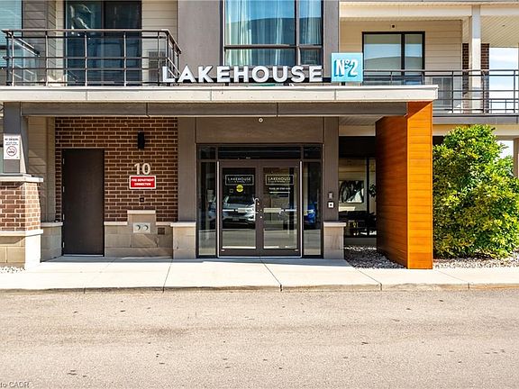 GRIMSBY ON THE LAKE! The Lake House No2 is a modern condominium building on the shores of Lake Ontario offering lakeside maintenance-free living. This updated 1 bed + den is well maintained with 710 sqft of living space situated on the 3rd floor with fantastic views of Lake Ontario. Stunning and tasteful upgrades throughout including maintenance-free vinyl plank flooring, oversized island, quartz countertops, top-of-the-line kitchen aid appliances, in-suite laundry, full height kitchen cabinets, soft close cabinets and drawers, spice rack, plate organizer, full glass shower, extra wide vanity & in-suite laundry. The den offers a multi-purpose space for a home office, home gym or spare bedroom. The many first-class amenities in the building or out the front door include a fitness centre, outdoor in-ground pool, party room, fitness centre, pet spa, beaches, parks, walking/cycling trails and numerous restaurants. With quick highway access and a short drive to Niagara's wine region, this has everything you're looking for!