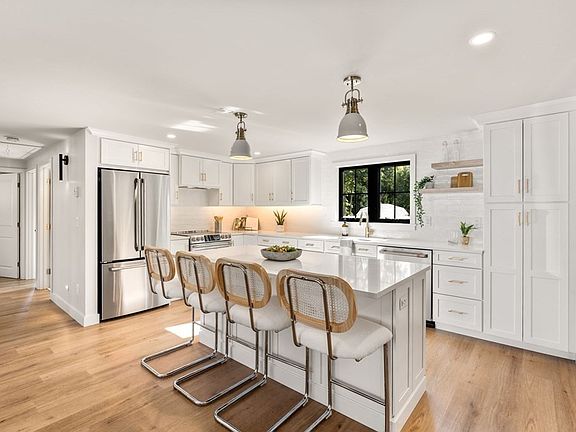 - Features: Flooring - Vinyl, Window(s) - Picture, Dining Area, Countertops - Stone/Granite/Solid, Countertops - Upgraded, Kitchen Island, Open Floorplan, Recessed Lighting, Remodeled, Stainless Steel Appliances, Crown Molding