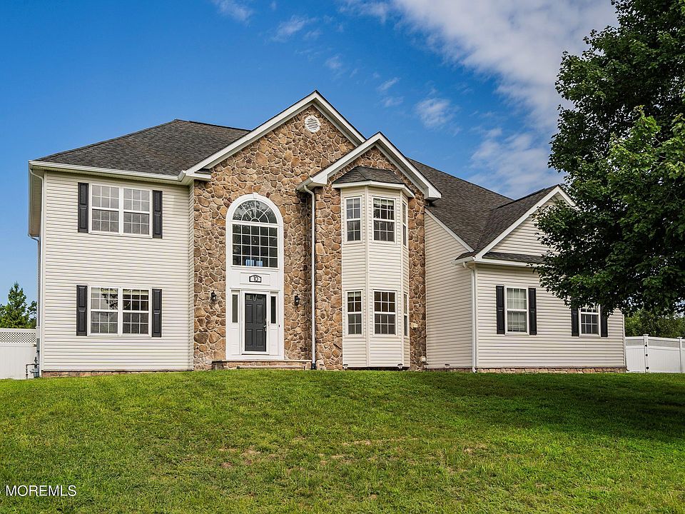 Nestled on a serene cul-de-sac, this beautifully renovated 5-bedroom, 2.5-bath Center Hall Colonial offers a perfect blend of elegance, space, and modern comfort on a rare double lot. Step into a grand two-story foyer framed by formal living and dining rooms, complete with crown molding and rich detailing. The heart of the home is a spacious family room with soaring vaulted ceilings and cozy gas fireplace, —perfect for everyday living and entertaining. The stunning, new gourmet kitchen is a chef's delight, featuring white cabinetry with gold fixtures, stone counters and backsplash, stainless steel appliances, center island, and a bright breakfast nook. The main level showcases luxury waterproof vinyl flooring, while the upstairs boasts beautiful hardwood throughout Enjoy seamless indoor-outdoor living with sliding doors leading to a 16x16 Trex deck overlooking your private 1-acre, fully fenced backyard. Relax and entertain by the impressive 18x43 in-ground pool, surrounded by a meticulously manicured lawnyour own private oasis. Retreat to the luxurious primary suite with two walk-in closets and a spa-like bath complete with a jacuzzi tub. The finished walk-out basement offers additional living space for whatever your needs may be. This exceptional property combines space, style, and serenityall just minutes from local amenities. Don't miss this rare opportunity!