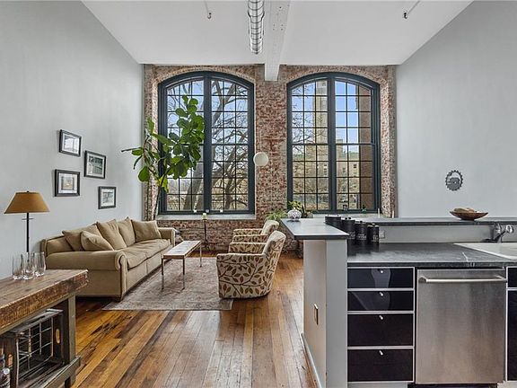 Welcome home to the heart of Pawtucket’s vibrant Arts District. The Riverfront Lofts, completed in 2004, is an award-winning mill restoration overlooking the Blackstone River, Slater Mill and Pawtucket Armory that combines industrial architecture with modern touches. This spectacular rehab of a stately mill is one of the finest in RI. This 2-level, bright and airy unit has been meticulously maintained. Sunlight is ushered in huge 11’ tall windows with tranquil River views. This loft boasts soaring 15'+ ceilings and 1968 sq ft over two levels. There are many options for all types of buyers. The main floor includes the spacious living area, kitchen, full bathroom and office area. The lower floor has 2 additional rooms, currently being used as bedrooms, living area and a half bath! Other amenities include central AC, in-unit laundry, 2 covered parking spaces, fully handicap accessible with elevator service on both levels. Gorgeous original wood floors on the main level and Brazilian slate on lower level. Brand new heat, hot water and A/C unit!