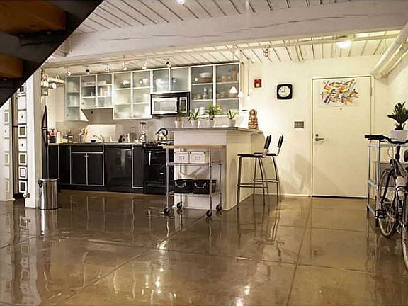 UNIQUE FLOOR AND A HALF LOFT SPACE W OPEN BEAMS. ORIGINAL 100 YR OLD CONCRETE DN, GORGEOUS HARDWOODS UP. COZY NEST FEELING. ALL APPLIANCES. 2 DEEDED PKG. IMMEDIATE ACCESS TO I 95; COMMTR RAIL /BUS. WALK TO THEATRE. LIVE/WK ZONING PERMITS ARTIST
