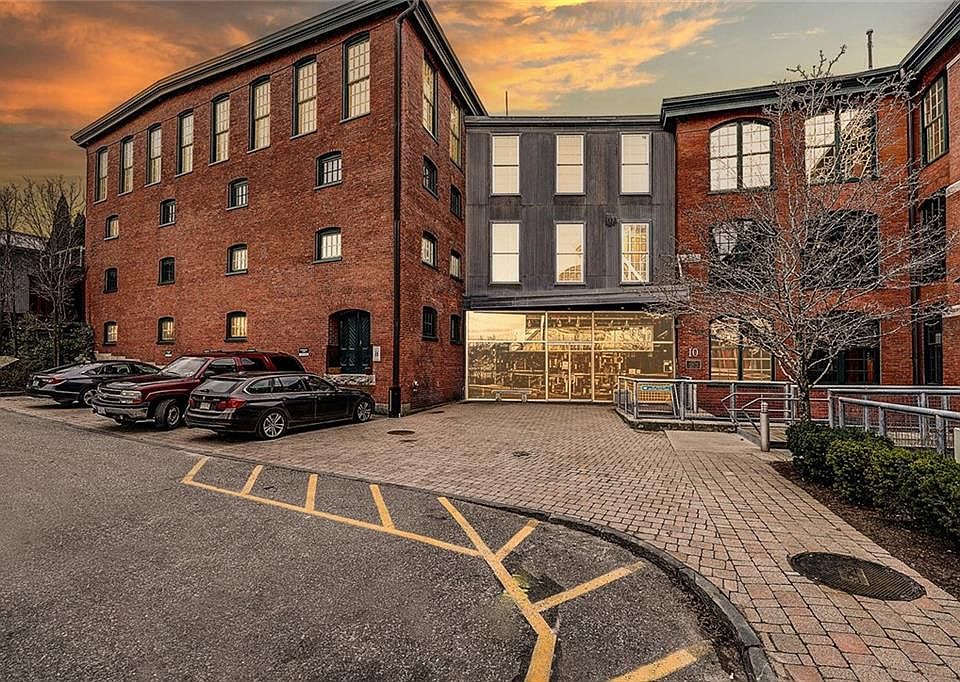 This stunning top floor unit is now available at Riverfront Lofts. Perched above the scenic Blackstone River, in the cradle where the industrial revolution began, this amazing mill conversion is the perfect city residence. As you open the door and step into the unit it unfolds before you with rich hardwood floors, crisply painted brick walls, oversized windows and a skylight that spans the living area. The slick chef's kitchen takes center stage providing the perfect backdrop for entertaining family and friends. The expansive living and dining areas have 12' ceilings which extend into the sky as you look through the glass enclosed roof. The split floor plan has two generous bedrooms including a private primary bedroom with a large walk-in closet. The full tile bath has a double vanity, a glass enclosed shower and conveniently located laundry. The second bedroom is great for guests or can serve as a telecommuting space. Add two assigned parking spaces in the garage plus easy access to the interstate and train station which makes commuting a breeze. You will not want to miss this one...