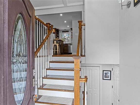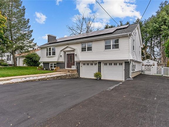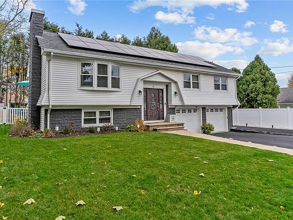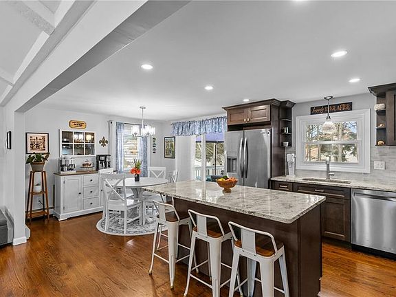 This beautiful 3 bedroom, 2 full bath home is the epitome of move in ready, featuring an array of exceptional upgrades that truly set it apart. The spacious living room boasts cathedral ceilings, an abundance of natural light and a stylish electric fireplace that seamlessly opens to the dining area & kitchen. The dining area is complete with sliders leading to a deck overlooking a large backyard—perfect for entertaining. The modern kitchen is a chef's dream, equipped with a large island, granite countertops, tiled backsplash, and stainless-steel appliances. The main level is finished off with three spacious bedrooms, including a primary bedroom, hardwood floors, and a tastefully tiled full bath. The finished lower level enhances the living space with a cozy fireplaced den, a versatile flex room, another full bathroom and laundry area. Heading outside - the yard is an entertainer's paradise featuring a saltwater pool (installed May 2023), a spacious deck, a stunning pergola providing a lovely patio sitting area, and two sheds for additional storage. Many recent updates include a new roof (2022), solar panels (paid off by seller at closing), a new AC condenser (2022), and mini-splits in the lower level (2024) - to name a few! Additional highlights include vinyl siding for easy maintenance, updated electrical systems, gas heating, a two-car garage, and an oversized driveway. This dream home could be yours!