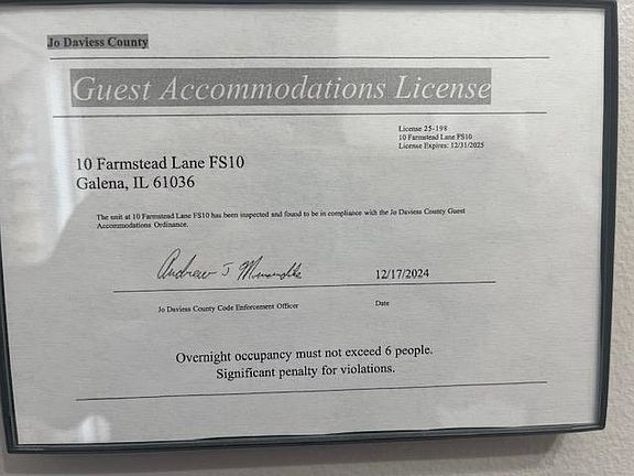 Remodeled 2 br 2 ba end unit townhouse situated in the heart of the Eagle Ridge Resort. Close to Eagle Ridge Resorts, Stonedrift Spa. Shenandoah Riding Center, Owner Club, and Marina. Three golf courses to choose from with different levels of difficulty. Active guest accommodation license for up to 6 people. Perfect as a short term rental investment or vacation home. Short drive to the charming downtown area with restaurants, train station, wine tasting, and assorted shops. Chestnut Mountain Resort and U.S. Grant House are some of Galena's fun attractions. Owners club has both indoor and outdoor pools, fitness center , basketball courts, game room, and business center. On the main level of the home is a spacious bedroom with vaulted ceilings and an open-concept living room, dining, and kitchen area. New Flooring throughout with freshly painted walls, ready for you to move in. Remodeled kitchen with new cabinets, granite counter tips, and stainless steel appliances. Wood burning fireplace in the living room. Newer Anderson windows. Patio door leads to a composite deck with views of the woods and a green space. Surrounded by mature trees and landscaped grounds. Upstairs, there is a second bedroom and bath. Townhome sold furnished with active guest accommodations License and 6 proximity cards.