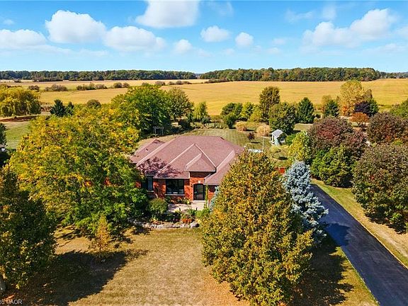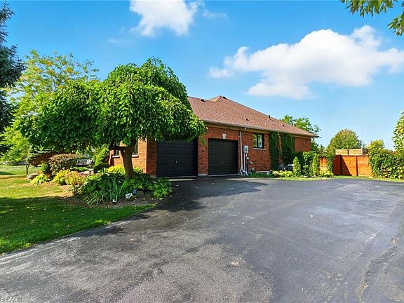 Welcome to your peaceful retreat near Lake Erie. Nestled on just over an acre of beautifully landscaped property, this stunning 2,301 sq ft bungalow offers the perfect blend of space, style, and serenity all within walking distance to Lake Erie and a short drive to the beach. Step inside to a grand foyer adorned with crown moulding which gracefully carries through the hallway and into a sun-drenched living rm featuring hardwood flooring, elegant wainscotting and a large picture window that fills the space with natural light. The white kitchen is both timeless and functional, showcasing quartz countertops, a large island and an open concept flow into the dining rm complete with a tray ceiling and wall-to-wall windows and French doors overlooking the lush backyard. Need more space to unwind? The cozy family rm also overlooks the backyard and leads directly to the deck — perfect for outdoor entertaining. You’ll find 3 generous bedrooms on the main floor including a spacious primary suite with a walk-in closet and a luxuriously renovated ensuite featuring a double vanity. Downstairs, the fully finished basement is a true bonus with 2 more bedrooms, a flex space ideal for a craft rm or workshop, another flex space (bedroom? Office?) and a massive recreation room with wall-to-wall closets. A 3-piece bathroom and abundant storage make this lower level as functional as it is expansive. Step outside to a private backyard oasis featuring a deck, patio, above-ground pool and 2 sheds all backing onto a peaceful farmer’s field. Enjoy serene country vibes with lake views from the front yard and feel secure year-round with a backup generator included. Plus, enjoy the convenience of a double car garage with inside entry. This is more than a home — it’s a lifestyle. One that offers quiet, space and comfort just moments from the beach, nature and community charm of Lake Erie living. Don't miss your chance to make this incredible property your own. Don’t be TOO LATE*! *REG TM. RSA.