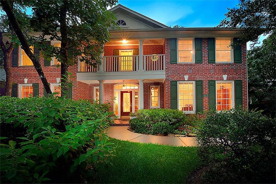 Updated Village Builders home on a cul-de-sac, wooded lot in Alden Bridge! Open & bright w/soaring ceilings, crown moulding, tile & wood flrs, abundant windows & built-ins throughout. Spacious kitchen w/Corian counters & bkfast bar opens to sunny bkfast rm; elegant frmal dining w/chair rail; private study; catwalk overlooks den w/gaslog FP; mstr retreat down; 4 generous bdrms & gamerm up; oversized garage w/10' extension (like a 3 car); huge yard w/covered brick patio surrounded by mature trees.