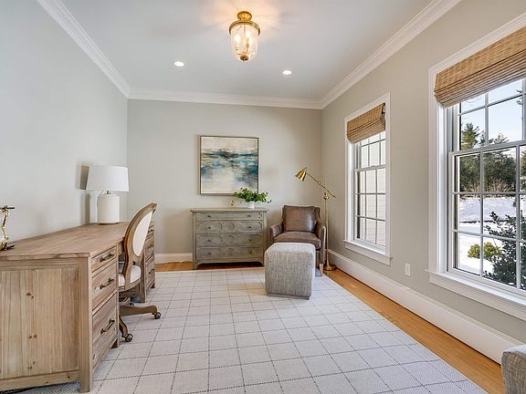 Welcome to Deertrees, one of Newfields most sought after neighborhoods! This perfectly situated 4 bedroom executive colonial rests on a level 2 plus acre landscaped lot and offers both elegance and functionality. Be impressed when you enter the light filled 2 story foyer and note the private office to the right and the lovely formal living room to the left. Entertaining is easy with an eat-in kitchen complete with center island, SS appliances, granite countertops, coffee station and easy access to the sun porch & mudroom. Classy dining room offers sweeping views of rear yard and ample room for entertaining. Spacious family room with wood-burning fireplace, oversized hearth & rear sliders directly to back deck, perfect for relaxing on warm summer evenings. Second floor boasts hardwood flooring throughout, 2 roomy bedrooms and one junior suite complete with large walk in closet and 3/4 bath. Cozy reading nook. Sophisticated primary suite with wood-burning fireplace, oversized walk in closet, and ensuite bath complete with double sinks, shower and jacuzzi. Lower level complete with private mirrored gym area, sunny large tiled recreation space and oversized bar area, 3/4 bath and storage area. Rear sliders take you to the outdoor oasis including patio area, hot tub, oversized deck and in-ground heated pool and surround sound. Numerous additional updates. Easy access to local trails, highways, school, shopping and beaches. Schedule your private showing today!