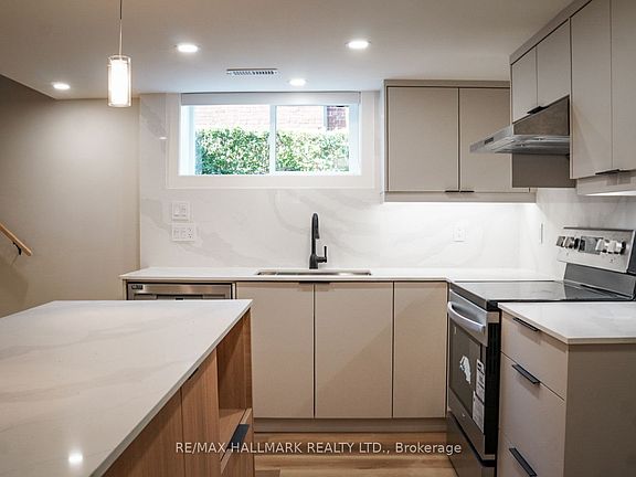 This beautifully designed 2-bedroom, all New with high end finishes* boasts a spacious layout, perfect for both relaxation. The highlight of the space is its stunning modern kitchen, which comes fully equipped with high-quality appliances and a large island. The stylish cabinetry and ample counter space make cooking a joy. Each bedroom offers generous natural light and abundant closet space, ensuring a comfortable and convenient stay. The en-suite laundry provides comfort and convenience. With its contemporary finishes and thoughtful design, this suite is an ideal retreat for those seeking a stylish and functional living space. One car parking is included on the private drive. A short walk to TTC, schools, parks and shopping. The tenant is responsible for paying 50% of the heat, hydro, and water