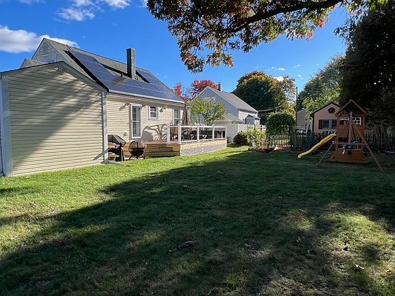 A real DOLL HOUSE......ONLY BIGGER! This gem is bright and cheery, a real Beauty. It boasts a gorgeous gourmet eat in kitchen. There is a 1st floor master bedroom and a dining room OR office. 2 additional bedrooms on the 2nd floor. The kitchen Atrium door takes you to the oversized composite deck and level fenced back yard. You will definitely enjoy those crisp Fall evenings around the Fire Pit toasting marshmallows and making S'Mores. Solar panels are transferrable. Many updates and upgrades make this a lovely home. Seller to secure suitable housing - Property identified and their offer has been accepted. This beautiful home is ready to GO.