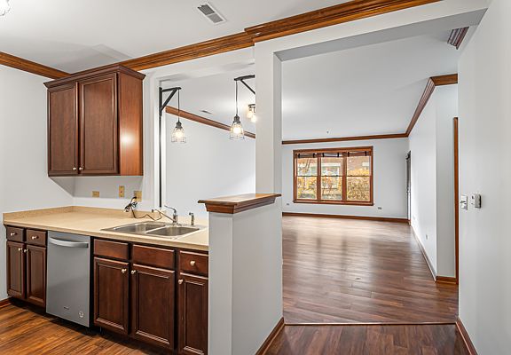 Welcome to your chance to finally call downtown Geneva home. Tucked quietly on the first floor of an elevator building, this beautifully updated one bed, one bath condo delivers the charm of historic Geneva with the convenience of modern living. From the moment you step inside, sunlight pours through the south facing windows, warming the open concept space and highlighting the fresh paint, modern vinyl plank flooring, and thoughtful updates throughout. The kitchen is finished with 42 inch solid wood shaker cabinets, newer appliances, and generous counter space, making everyday cooking feel effortless. The layout flows seamlessly into the living and dining areas, giving the home an airy feel under the high ceilings. In unit laundry, abundant storage, and a private enclosed and covered patio add the comfort and livability that condos in this location rarely offer. Your heated garage parking spot with an additional storage cage sits just below, providing the ease and security every homeowner hopes for. Rentals are allowed, giving you the option to live here long term, keep it as an investment, or enjoy the flexibility of both over time. The location is truly the star. Step outside and you are directly across from the iconic Fox River Trail, a gateway to morning walks, riverside sunsets, and easy biking north to downtown St Charles or south into Batavia. And when you want to enjoy Geneva's signature local flavor, you are moments from beloved favorites like Buttermilk, The Dam Bar, FoxFire, and the countless boutiques, coffee shops, and historic storefronts that make this town one of Illinois' most adored communities. Geneva is consistently praised for its charm, walkability, and historic district, and now you can be part of it all. This condo is a rare chance to join the downtown Geneva lifestyle at an incredibly approachable price point. Quiet, convenient, and surrounded by beauty, this home lets you stop visiting Geneva and finally start living here. With the holidays approaching, there is no better place to come home to. This one will not last.