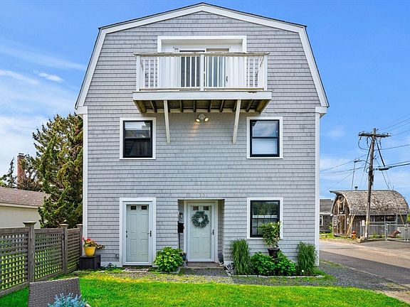 With water views of both Fort Beach and Gas House/Gerry Island and a stone's throw from Fort Sewell and The Barnacle, this two-family in historic old town is the perfect pied-a-terre. The first-floor unit includes a living/dining room opening into an updated kitchen. A good-sized bedroom and full bathroom as well as in-unit laundry make this a great option for single-level living. The second unit takes the second and third floors and offers expansive views of water on both sides. Enjoy two spacious bedrooms on the second floor as well as a full bathroom. Upstairs in the crow's nest is a completely open and airy living/dining/kitchen area with gorgeous views, vaulted ceilings, and a balcony overlooking Marblehead light house. New siding, beautifully re-finished light oak hardwood floors, storage shed, and a lovely yard add to the charm of this property. This unique opportunity is the best of old town Marblehead!