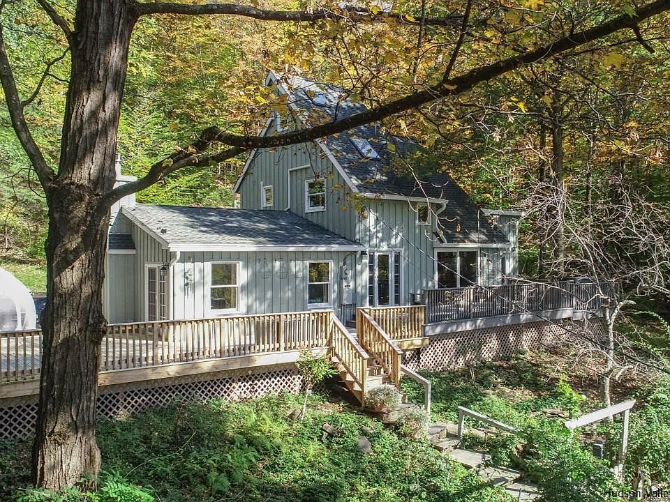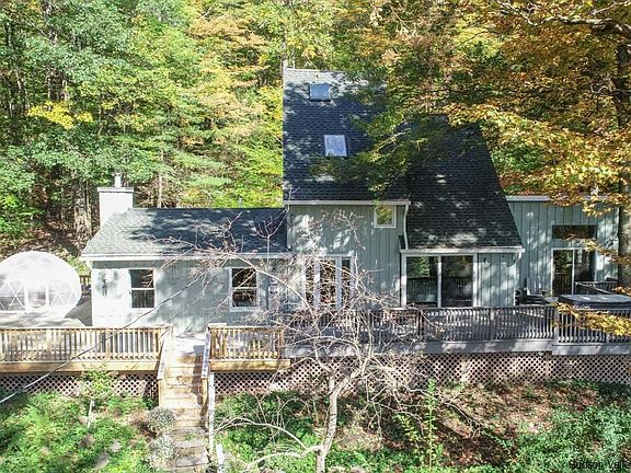 Absolute country living ............ with many, many amenities.  You'll like what you see in this well maintained contemporary home.  Not too big, not too small, with a bright, open floor plan that includes a living room, dining area and kitchen with a vaulted ceiling and gas fireplace. The first floor primary onsuite bedroom has a freestanding potbelly gas stove, sliding glass doors which open to the expansive decking with a 6 person hot tub and a view of the mountain. The family room also leads to the deck and has a mountain view. The living room is open to the kitchen for mingling with famiy and friends while preparing meals and opens to more decking just off the dining area.  The first floor is completed with a pantry/laundry room and a half bath.  Upstairs is two bedrooms, a full bath and a den which could substitute for a small guest room as well. There is a loft on the 3rd floor accessed via a wall ladder.  Many improvements have been made within the past few years such as the Mini Splits for heat and A/C, an on demand Generator, an EV charging port, new kitchen appliances, new gas fireplace in living room, new gas potbelly stove (in primary bedroom) and all new expanded decking with a hot tub and many new windows to name just a few. New sliding glass doors have been installed in the family room. The slider in the primary bedroom is being done soon.   Sited on 3 plus acres, there is access from both Grogkill road (town maintained) and Four Wheel Dr (privately maintained) and is part of the Grogkill Association which, for an annual fee, enjoys the use of the private pond, picnic area and waterfall nearby.    Pack your suitcase, because this home is sold furnished, and is move in ready!