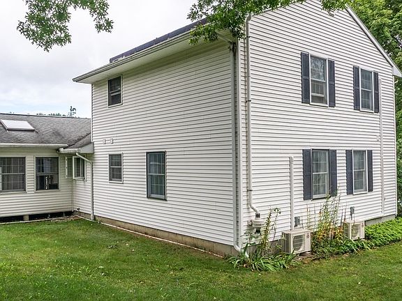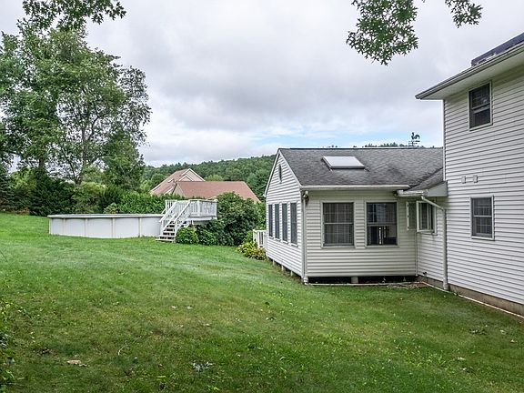 With Sunset Views from the property, situated on a quiet cul de sac you can enjoy all this spacious 3 bedroom 3 full bath home has to offer. Enter through the front porch to the LR with gas fireplace which opens to the eat in kitchen with granite countertops and tile flooring and another fireplace. Make your way to the vaulted sunroom with skylights and out to the Trex deck. Down the hall are 2 full baths and 2 bedrooms. The main master suite is on the second floor with vaulted ceilings and a third full bath. The .74 acres is private and has an above ground pool with enclosed decking. A solar lease agreement puts money back in your pocket. A large 2 car garage, shed, 3 mini splits, 5 ceiling fans, Buderus furnace and unfinished basement with wood burning fireplace await you. Don’t miss our on this great home in a prime location in low tax Hadley! It is near everything. Come see it today!
