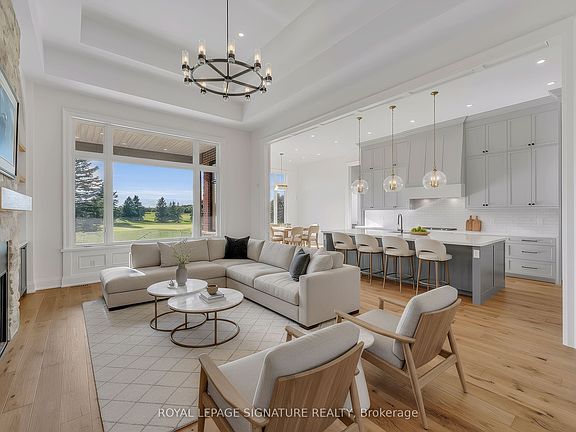 Experience luxury and tranquility in this stunning new build on 1.43 acres in Whitby, Ontario. Boasting 3,210 sq ft of sophisticated living space above the basement, this elegant home offers 3 spacious bedrooms, 4 bathrooms, and dual 2-car garages with 14 ceilings. Nestled between two 18-hole golf courses and just minutes from Highway 407 and downtown Brooklin, enjoy the perfect blend of privacy and convenience. Inside, white oak hardwood floors, 12' ceilings with coffered designs, custom trim, and a modern open-concept kitchen with a walk-in pantry create a welcoming and stylish atmosphere. The fully sodded and irrigated lot, covered rear Loggia with BBQ gas line, and state-of-the-art mechanicals including zoned HVAC, central air, heated ensuite floors, and remote-controlled blinds ensure comfort and ease. Live your dream lifestyle with elegance and space to entertain in every corner.