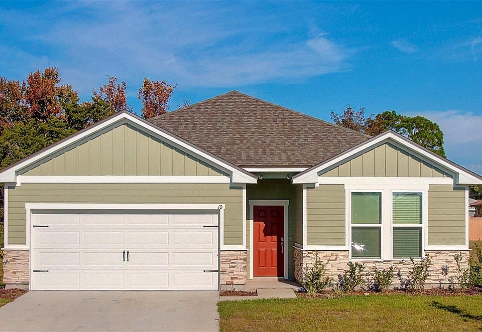 Newer Construction Completed in 2025 Welcome to 10 Freneau Lane, a beautifully designed Biltmore model offering 3 bedrooms, 2 bathrooms, a versatile bonus room, and 1,574 sq ft of thoughtfully planned living space in Palm Coast’s highly desirable F neighborhood. Sitting on an oversized corner lot, this nearly-new home feels light, modern, and move-in ready. Remainder of builder’s warranty for peace of mind. Step inside to an open-concept layout featuring luxury vinyl plank flooring, solid-surface countertops, custom cabinetry, and blinds throughout. The spacious kitchen flows effortlessly into the main living area, ideal for entertaining or comfortable everyday living. Separate laundry room with washer and dryer included. The Primary Suite offers a large walk-in closet and spa-style en-suite bathroom with dual sinks, oversized shower, and built-in shelving for lots of storage. Two guest bedrooms plus an additional private bonus/flex room with privacy door provide endless options. Outside, enjoy low-maintenance Hardie board and stone exterior siding, beautiful curb appeal, and a covered back patio to personalize your outdoor living. No HOA. Plenty of room to add a pool and spa. Located just 6 miles from the beach, minutes to shopping, schools, medical, golf courses, and scenic trails.
