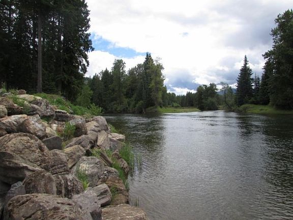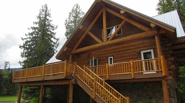 Acre and half of beautiful Clark Fork Riverfront. Custom log home with wrap around deck. Large upper level bedroom with large walkin closet, and private bath room with shower and bath. Warm cozy kitchen area with island. Plenty of cupboard space. Open to dining room and living room. Vaulted tongue and groove ceilings. Windows facing the meandering river and mountains beyond. Dining and living room sit with custom wood accents, and log stairway to upper level. Large windows, sliders, to the outside deck with views to the garden, lawn, and landscaped area just before the rivers edge. Hydronic heating. 2nd living quarters with separate well, electric and septic. 2 car oversized attached garage with detached shop, 2 car carport, and 2 car oversized garage with fireplace. Must see.