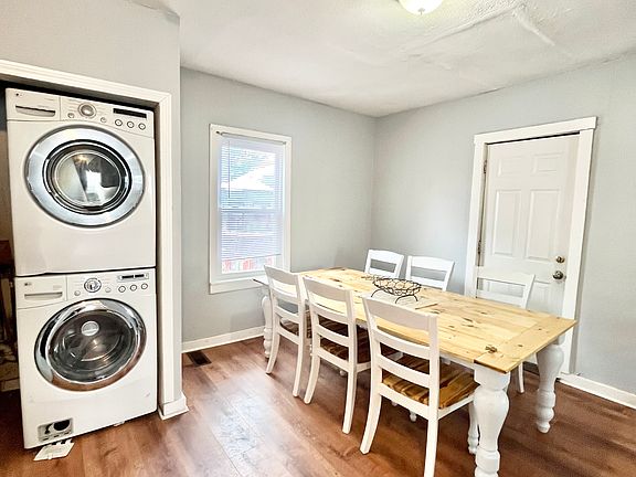 Updated kitchenDining areaHardwood floorsLaundry in unitSmall outdoor area