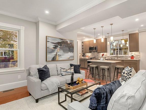 This stunning gut-renovated property is not one to be missed! Situated between Medford Square, Assembly Row and Wellington Circle with convenient access to I-93, public transit and local area amenities. This 4 bed, 2.5 bath has undergone a tasteful and extensive renovation that blends original character with modern updates. Gleaming hardwood floors throughout, an abundance of natural light, and excellent ceiling height - you'll feel at home the moment you walk through the door. The home also features a brand new gourmet eat-in kitchen with high-end cabinetry & finishes, master en-suite, wrap around front porch, spacious back yard with deck and much more! Plenty of storage in the basement with potential for a great workshop space and additional possibilities on the finished 3rd level with plumbing available to add another bathroom. Brand new systems, windows, roof and front walkway with off-street parking - there's nothing left to do! Don't miss your opportunity to call this gem home!