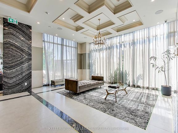 Welcome to a refined residence at D'Or Condos, located in the Thornhill area of Vaughan. This 1,128 square foot 2 bedroom & 2 bathroom corner suite is great for people looking to downsize or a small family looking for a large space. With a chef's kitchen for anyone who loves to cook and plenty of cabinetry, this unit is perfect for people who love to entertain large extended families. The kitchen is an open concept with the living room and dining room which makes the space feel even more open. The primary bedroom easily fits a king sized bed with some furniture as well as having a large walk in closet and ensuite. The second bedroom has a smaller walk in closet. The suite comes with parking and a locker, and the amenities include an indoor swimming pool, steam room, sauna, gym, yoga studio, outdoor BBQ area, and dog spa. Move in, bring your furniture, and enjoy. This unit is a must see! Internet is included in the maintenance fees.