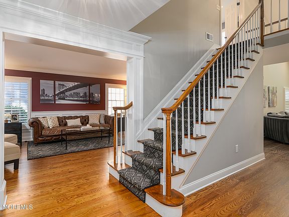 Welcome to this beautifully updated 5-bedroom center hall colonial located in one of Fair Haven's most desirable neighborhoods. This charming home features a bright, newly renovated eat-in kitchen with custom solid wood cabinetry, stainless steel appliances, touchless faucet, purified drinking water tap, and oversized windows and skylights that flood the space with natural light. Wide plank oak hardwood floors run throughout, complemented by recessed lighting, custom decorative molding, millwork, and plantation shutters throughout. Enjoy cozy evenings by the wood-burning fireplace, and take advantage of the finished basement complete with a game area and kitchenette... Outdoor living is equally impressive, with a covered rear deck featuring lighting, fans, built-in sound system, outdoor TV, and landscape/path lighting - perfect for entertaining or relaxing. The rocking chair front porch, fenced-in yard, and underground sprinkler system add to the home's curb appeal and functionality. This move-in-ready home combines modern upgrades with classic style in a prime location. A must-see,