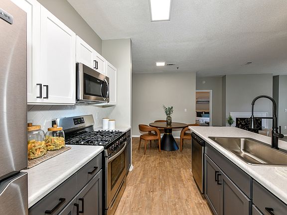 Avana Dunwoody offers more than one package of apartment finishes. When reviewing the details of apartment home availability using the button above, select "View" under the "Amenities" column to display which package applies to each available home. Classic: An apartment that feels like being back home. Oak cabinets with white appliances (excluding microwave), laminate countertops. Plush carpeting in bedroom(s) and living area. Vinyl flooring in kitchen and bathrooms. Tan wall paint with white trim throughout apartment. Platinum Renovation: Lightly refreshed with black or white cabinets, stainless steel appliances excluding microwave, laminate countertops, grey or white wall paint with grey or white trim, carpet in living and bedrooms with vinyl in kitchen and bathroom. Emerald Renovation: Modern farmhouse style. This apartment features white and grey cabinets, stainless steel appliances with microwave and faux granite style countertops with chevron tile backsplash. Wood-like plank flooring throughout on the ground floor and common living areas. Carpeting in bedroom(s) on the upper floors with grey wall paint and white trim throughout the apartment. In addition, this apartment features updated kitchen and bathroom fixtures, lighting and hardware throughout, 2 inch faux wood blinds.
