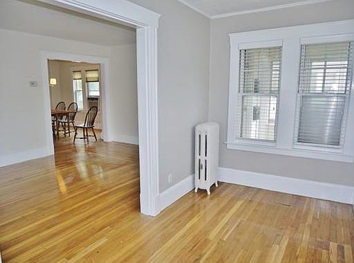 Quintessential starter home offering open concept living. Wide dimensions, high ceilings, and extra windows provide a sense of space, volume, and light. 2 bed/1 bath in two-unit building central to all the great and diverse groceries, take-out, and public green spaces Watertown has to offer. Bonus sunroom (with heat) off the living area creates an awesome space for your home office. Beautiful formal dining room complete with original hardwood floors. Updated kitchen with gas cooking and washer and dryer. Two evenly sized bedrooms with generous closets. Additional improvements include fresh paint, new roof(2016), replacement windows, newer hot water tank. Find your urban oasis in the oversized landscaped shared yard. Close to public transportation and highways. Also comes with laundry, two off-street parking spaces, and a Huge private storage area in the basement!