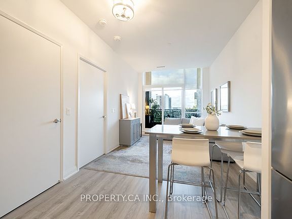 Beautiful & Meticulously Maintained Unit At Valhalla Square! Welcome To This Stunning 1+Den Suite That Truly Lives Like A 2-Bedroom - Offering Exceptional Value At The Price Of A One-Bedroom Plus Den. Featuring Soaring 10-Ft Windows! And Thoughtful Custom Built-Ins By CLOSET BY DESIGN Throughout, Including In The Bathroom, Front Hall Closet, Den, And Primary Walk-In Closet. Enjoy Laminate Flooring Throughout, Custom Roller Blinds, And A Mirrored Front Hall Closet That Enhances Both Style And Function. The Oversized Bathroom Features Custom Cabinetry For Extra Storage, While The Modern Kitchen Boasts Stainless Steel Appliances, Stone Countertops, And A Sleek, Functional Layout With A Movable Stone Island Perfect For Dining Or Entertaining.The Den Is Large Enough To Serve As A Second Bedroom, Nursery, Or Ideal Work-From-Home Space, Complete With A Custom Standing Storage Unit. The Spacious Living Area Allows For Both Comfortable Lounging And Dining, And Opens To A West-Facing Balcony That Welcomes Beautiful Afternoon Sun. The Primary Bedroom Easily Fits A Bed And Workspace. Complemented By A Custom Walk-in Closet With Built-In Organizers. An Oversized Laundry Room With Built-In Shelving Adds Exceptional Convenience And Extra Storage. Upgraded Light Fixtures For Modern Living. Become Part Of The Soon-To-Be-Completed Valhalla Square Community, Offering Top-Tier Amenities Including An Outdoor Pool, Fitness Centre, Pet Spa, Party Room, And More. Enjoy The Convenience Of A Complimentary Shuttle To Kipling Station, Sherway Gardens & Loblaws Morning & Evening Hours. Quick Access To Hwy 427, And Proximity To Sherway Gardens, Major Highways (401.OEW.Gardiner), Mississauga, GO Train. And An Abundance Of Shops And Restaurants.A Nearly New Building Offering The Space And Function Of A 2-Bedroom At Exceptional Value - An Opportunity Not To Be Missed.