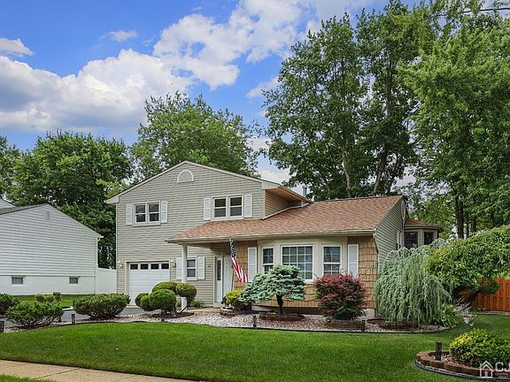 Welcome to this beautiful landscaped corner lot 3 bedroom 1.5 bath split level located in the center of Sayrewoods South Development offering a formal dining room, living room and family room. Kitchen has custom cherry cabinets. Stainless steel appliances. Updated modern half bathroom. Nice sized bedrooms. Unfinished basement. Huge deck for entrainment. Pavers all around the custom in-ground pool. Newer 50 year roof. Updated utilities. Near all shopping, restaurants and public transpiration. This is a must see.
