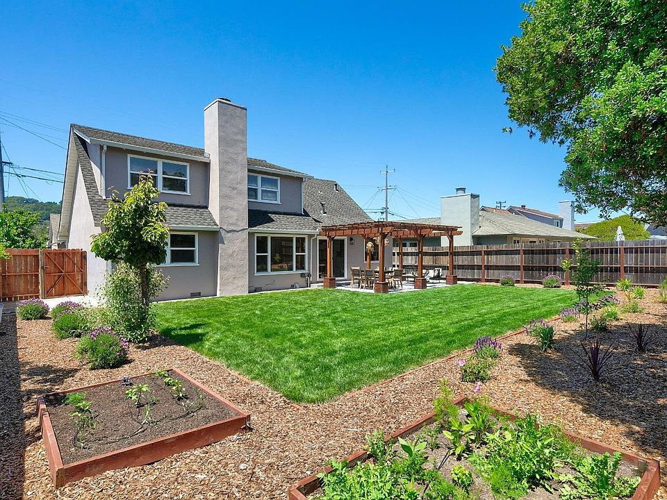 With a thoughtfully laid out floor plan, this home makes the most of its light-filled living space. Step inside & be greeted by hardwood floors that flow into the great room & guide your line of sight out to the gorgeous backyard. Beautifully updated, the chef's kitchen features top-of-the-line stainless appliances, a chic slab countertop, a passthrough to the dining area for easy interaction w/ guests & an oversized window that looks out to the backyard & allows natural light to flood the space. Perfect for outdoor gatherings & relaxation, the backyard enjoys a paved dining patio w/ a pergola, creating a beautiful space for al fresco dining & entertaining. The large flat grass lawn is ideal for outdoor play, while raised garden beds offer the opportunity for green thumbs to cultivate their own produce. This property offers easy access to a variety of amenities & outdoor attractions. Commuting to San Francisco is a breeze, with Hwy 101 & the Larkspur Ferry just a short drive away. For all your shopping needs, the nearby Nugget Market, The Village & Corte Madera Town Center offer stylish options. Nature enthusiasts will appreciate the proximity to Ring Mountain, where hiking trails await exploration. Very close to great parks including Skunk Hollow Playground around the corner!