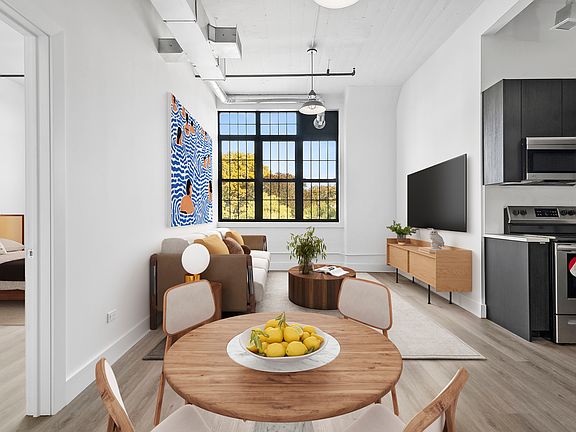 Discover luxury living with these thoughtfully designed apartments, offering an impressive array of features. The expansive, loft-like ceilings and oversized windows flood the space with natural light, creating a bright and airy atmosphere. Elegant hardwood flooring runs throughout each apartment, adding warmth and a touch of sophistication. The open-concept floor plans provide flexibility, perfect for a variety of lifestyles.