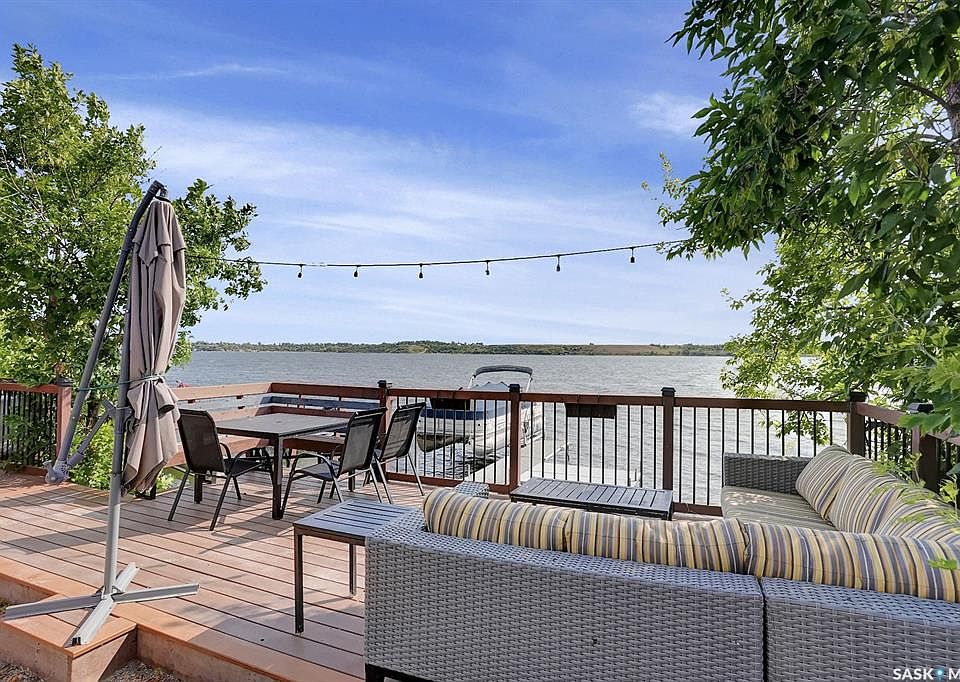 LOCATION! LOCATION! LOCATION! This Lakefront lot in Grandview Beach is only 2 lots from the main beach! Build your dream getaway only 50 minutes from Regina and 12 minutes away from the village of Dilke for the closest grocery and services. The lot is landscaped with rock and a seating area and a large lake front composite deck measuring 24x10 with a cooking bar and outside fridge. There are two 35 amp plugs and power to the shed. There is septic (1500 gallon 2017) and town water hookup (not drinkable). A gas line runs in the middle of the road and there is the ability to run a line to the property. Concrete Retaining wall was installed in 2022, each block weighs approx. 4500 lbs. The retaining wall was not required; it was installed for a clean and secure future cabin build. Neighbours live there full time. Land is on leased Crown land and the lease expires May 15, 2062. Dock is included. Trailer, boat and lift negotiable with the seller.