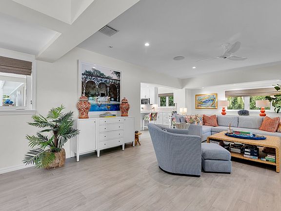 Spacious pool deckOpen flairPlenty of lightDistinctive coral rock fireplaceElegant tile floorsGenerously proportioned kitchenCharming jewel box
