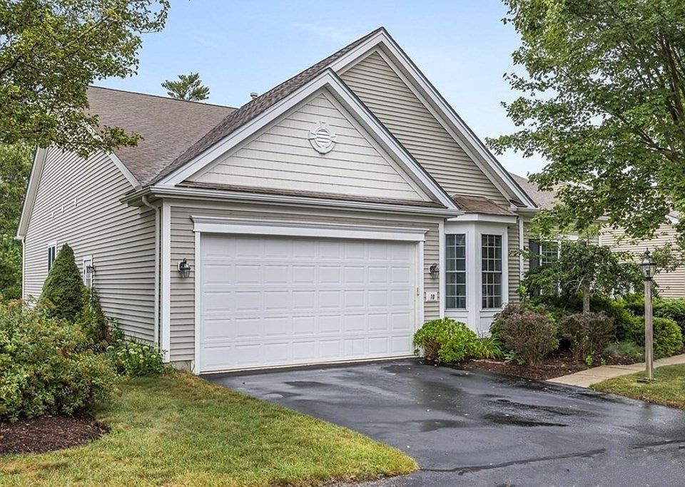 ONE FLOOR LIVING in this lovely Vanderbilt style home located in the 55+ neighborhood in Great Island at The Pinehills. Pretty landscaping & walkway to side entrance front door w/ covered entry & railings. Enter foyer to private home office w/ French doors. Welcome guests in your formal living room open to the dining room w/ wainscoting & crown molding. Open floor plan of the family room w/ gas fireplace, kitchen w/ newer appliances & breakfast nook area w/ slider to the extended deck w/ stairs to the wooded back yard. Enjoy a peek of the seasonal Great Island Pond Views. Spacious Primary suite w/ newer carpet & guest bedroom w/ bow window & full bath also on this floor. First floor laundry w/ 2 closets and built in cabinets. Unfinished lower level w/ pre-plumbing prep & slider to back yard. 2015 water heater and 2017 HVAC. Great Island offers the Overlook clubhouse with indoor pool, fitness, billiards, outdoor bocce, tennis, walking trails and more.