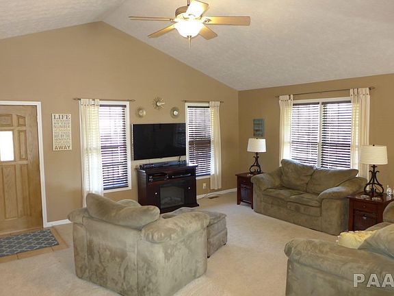 Wonderful 4 BR, 3 bath ranch in lake community showcasing beautiful open floor plan, cathedral ceilings & tasteful decor throughout! Greatroom opens to eat-in kitchen offering an abundance of counters and cabinet space & large breakfast bar island. Spacious bathrooms. Main floor master w/ cathedral ceilings. Finished walk-out LL complete with huge rec room, 2 bedrooms and full bath. Gorgeous yard w/ fire pit, deck, patio & shed. Enjoy everything Heritage Lake has to offer with lodge, pool, tennis courts, beach, park & lake! House fully resided in 2015 and new heat/ac in 2016.