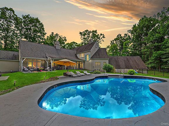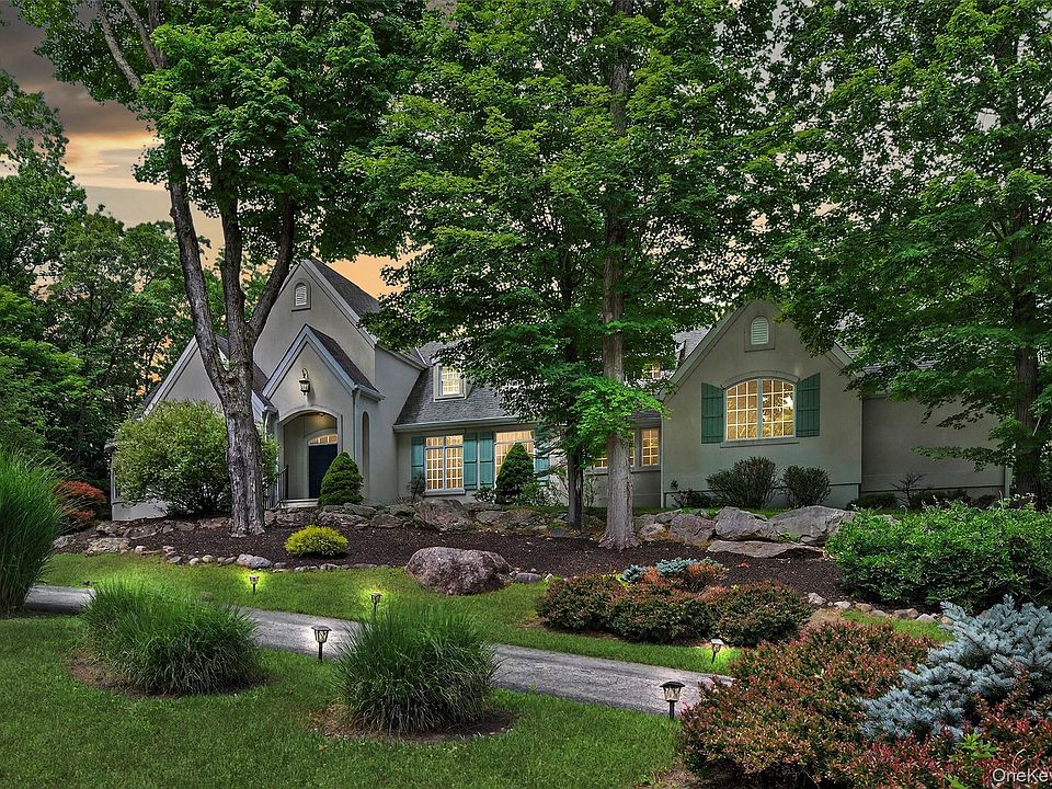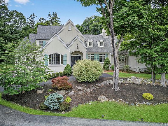 Nestled on over an acre of serene, maturely landscaped grounds, Le Château des Verts offers a true sanctuary just 30 miles north of Manhattan. The design immediately captivates you as you arrive, with a grand two-story turret and custom arched windows accented by slate-blue shutters—a nod to the classic beauty of French architecture.
