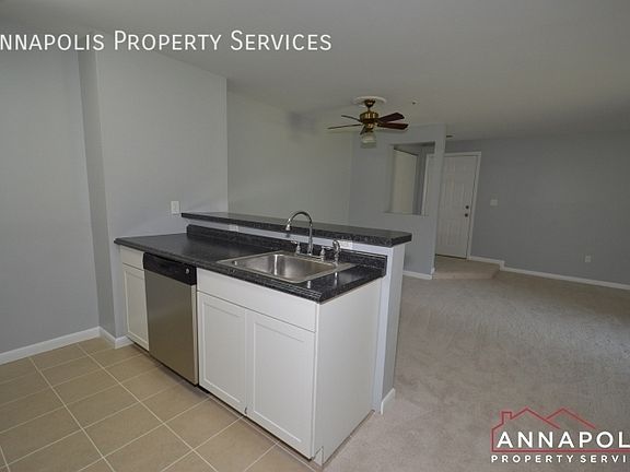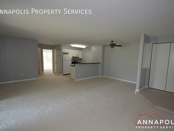 Spacious, first-floor two bedroom, two full-bathroom condo in the Annapolis Overlook Community. Great First-floor location with easy access to the community pool and workout facility. Fully carpeted with tiled kitchen and bathroom floors, paved patio area. Two parking spaces, one allocated and one open.