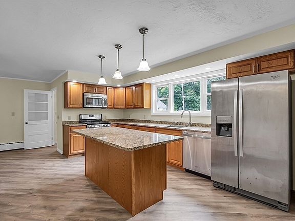 Lovingly built by its original owner, this home has been a cornerstone of comfort and family living. Zoned as a single-family residence, the flexible floor plan offers opportunities for continued use as a one-family home or easily adapting to an in-law apartment. The first floor features a beautifully updated kitchen with a large island, perfect for gathering, and flows into a family room with cathedral ceilings and serene yard views. Also on the first floor are flexible living spaces, three bedrooms, and a full bath. Upstairs, you'll find two additional bedrooms, another full bath, and a second full kitchen, offering even more versatility. The exterior includes a welcoming front porch, a double-width driveway, and lovely stone terraces with well-maintained landscaping. Conveniently located less than 2 miles from Market Basket Plaza, 1.5 miles from Whole Foods Plaza, and close to UMass and Route 9 for easy shopping, dining, and commuting. Don’t miss this unique opportunity!