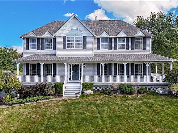 Experience glorious Shawangunk Mountain views. Come see this superb, 3342 sq. ft. , 4 bedroom, 3.5 bath, custom built colonial, loaded with upgrades on 2.6 panoramic acres in an upscale cul de sac. It features an open floor plan with 9’ ceilings on the first floor, a great room with lovely wood burning fireplace, rich hardwood floors, designer kitchen with maple cabinetry, granite counters, new stone backsplash, stainless steel appliances, breakfast nook, formal dining room, den and full bath, laundry room, front porch and large deck on the main level. Upstairs is a huge primary bedroom with vaulted ceiling, 3 closets that includes 2 walk-in closets, primary bath with dual vanities, whirlpool bath & shower, 3 additional bedrooms, and full bath. The lower level sq footage is included in total and has a recreation room, bonus or exercise room, 1/2 bath and French doors leading to back yard. Improvements include new roof 2019, 2 year old storage shed & 2020 repaved driveway & more. Close to Pine Bush Village shopping, parks, Pine Bush schools. You will love coming home.