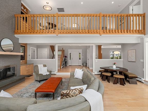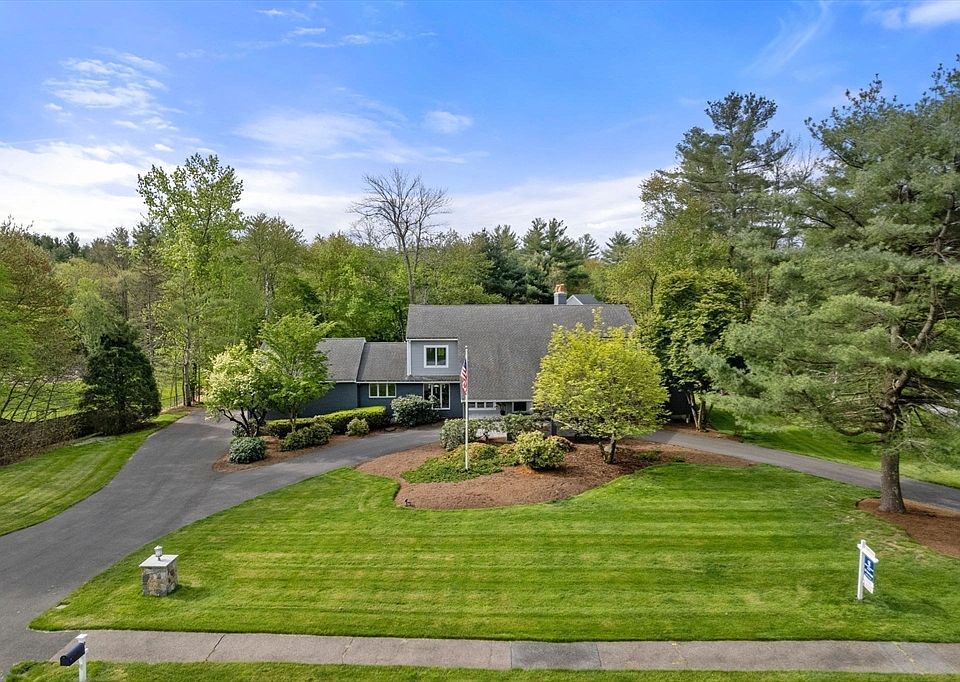 A great home for entertaining! Stunning energy-efficient Contemporary Colonial with first floor primary set in a premier neighborhood! The house has it all - an oversized deck and patio w/gas fire-pit, professionally manicured 1 acre+ grounds, 3-car garage, mudroom, custom built-ins, Birch hardwood flooring thru out and a new Scandia kitchen. The foyer flows into the sun-drenched, fire-placed family room w/wet bar. The striking white cabinet kitchen includes an extended quartz island, induction cooktop, double oven, warmer & walk-in pantry. The first-floor primary is an oasis with fireplace & French doors, incredible bath with soaking tub, large walk-in closet and separate shower/lav, leads to the patio. Upstairs you are greeted with an airy study area overlooking the family room which flows into an oversized bedroom w/full bath + 2 generous bedrooms with a Jack and Jill bath. The lower level offers a bonus family room/playroom, full bath, stairs to the garage and plenty of storage!
