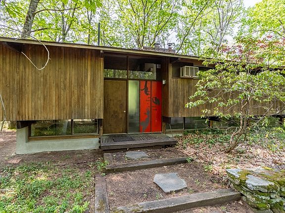 Mid-Century Modern Deck House with the possibility to be a dream home! A beautiful lot located at the end of a cul-de-sac and near conservation land. This home has high ceilings throughout the main level and is adorned with large windows to let in lots of natural light. An original condition home with a large fireplaced living room with floor-to-ceiling brick hearth, and wall of sliders to a deck perfect for enjoying the nature that surrounds you. A great layout, spacious rooms, and so much up-value potential. This home, with some TLC, could be a real showstopper! This is an Estate Sale, and the property is being Sold AS IS. Needs a new septic. seller will provide an approved 4 bedroom approved plan, but will not escrow funds for septic or install septic. THIS IS A GREAT BUY!!!!!
