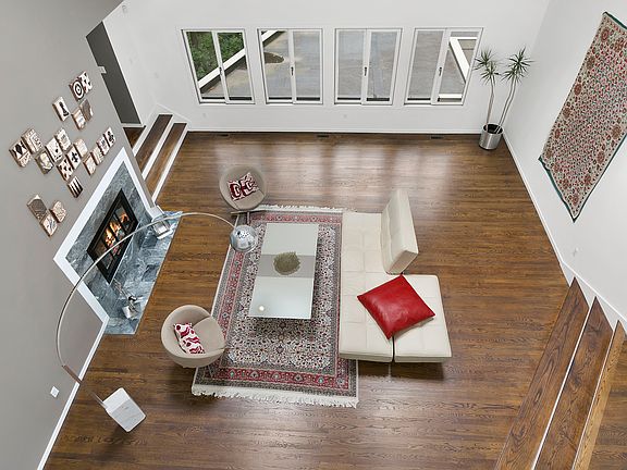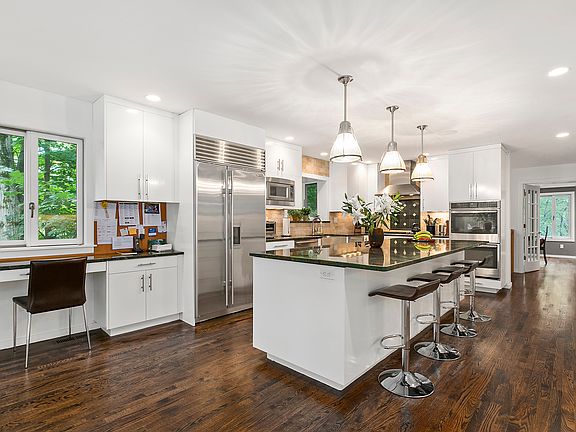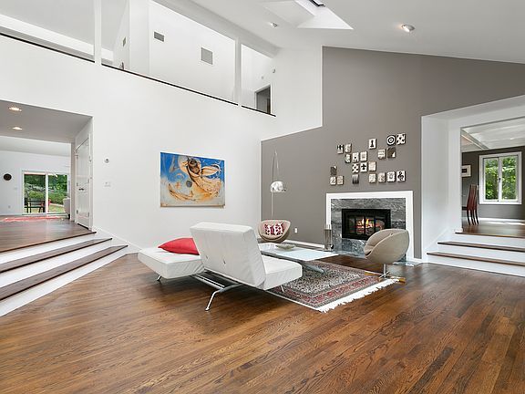 Located in the High Meadows cul-de-sac enclave of custom contemporary homes. A home filled with style, sophistication and countless upgrades. Dramatic two story entrance complete with stunning open natural wood staircase. Wall of windows pour natural lighting into the homes grand open floor plan defined by rich hardwood floors and soothing room colors. Fabulous designers kitchen with large marble countertop island and sun drenched breakfast room. French doors lead to the dining room with coffered ceiling. Tranquil master bedroom suite with Juliet balcony and spa influenced bath. Lower level playroom and exercise room add to the homes value and enjoyment. Private property professionally landscaped with stonewalls and specimen plantings.