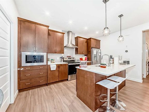 Welcome to a beautifully designed home offering comfort, functionality, and modern style in one of the area’s most desirable new communities. The layout quickly opens into an impressive open-to-below concept, allowing natural light to fill the main floor and giving the home a bright, welcoming feel from the moment you step inside. Just beside the entry, you’ll find a well-sized main-floor bedroom featuring a large window and full closet, ideal for guests, seniors, or anyone preferring the convenience of ground-level living. A full bathroom with a standing shower is located directly across, making this section of the home highly functional for multi-generational families. A modern slider divider wall provides a stylish separation between the living/family area and the dining space. This thoughtful touch allows flexibility in how you use each room while maintaining an open-concept feel. The kitchen sits at the heart of the main floor, offering excellent workspace, ample cabinetry, and a generous pantry. As you move to the upper level, you’re welcomed by a bright and versatile bonus room, perfect for a secondary living area, playroom, or home office. The primary bedroom is a private retreat featuring a spacious layout, a large walk-in closet, and a full bath with a standing shower. This upper floor also includes a well-designed laundry room with a window and shelving, making household tasks more convenient. A common bathroom with a tub and two additional bedrooms—each with comfortable layouts and natural light that complete the upper level. An added benefit a gas line already installed, offering flexibility for future upgrades or cooking preferences. The separate-entry basement provides significant future potential. Already partially finished by the seller, it includes framing for two bedrooms, a partially set-up kitchen, a roughed-in bathroom, plus a planned den and family room. This lower level is ideal for future development as a rental income, extended family space, or additional living area, allowing the new owners to customize it according to their needs. The front attached garage and driveway allow for 4 vehicles to be parked at all times. On top of everything you will have a peace of mind for having Alberta New Home Warranty for this property. This is a highly desirable community that has amenities such as 15 min drive to the YYC International Airport, 15 min drive to Cross Iron Mills shopping Centre with a potential future LRT station & access from Deerfoot and Stoney Trail. Overall, 10 Homestead Pass delivers a rare blend of thoughtful design, practical layout, and room for future growth. With its main-floor bedroom, spacious kitchen, bonus room, upstairs laundry, and flexible basement setup, this home is ready to accommodate families of all sizes. Call your favorite realtor to book the showing as this beautiful house won't last longer!