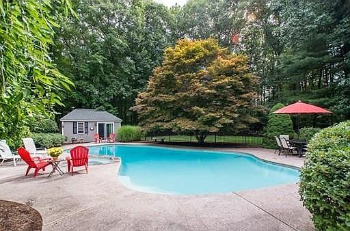 The property youve waited for in North Walpole's Northwood Estates: Beautifully updated colonial majestically sited on a lush private lot with heated in-ground pool and hot tub " 2016 Kitchen features white cabinetry, tile floor, and granite counters. Great room has vaulted ceiling & skylights, a wood burning fireplace & connects to the deck which overlooks the pool & backyard. 2nd Floor Baths updated in 2018. 1st floor powder room updated 2016. Master Bathroom features a tiled shower stall with glass door enclosure. Closets have custom shelving. Finished lower level has study space, billiards room, relaxation space and an additional 1/2 bath which was updated in 2018. Ornamental trees and plantings throughout the property add a feeling of enchantment - feels like home, could it be yours? Don't miss your opportunity to own this magnificent home in the Fisher School District. Great commuter location - 8 miles to RT 128 & 2 miles to the Walpole MBTA Commuter Rail. Open SUN 12-1:30