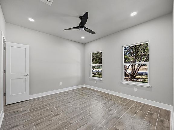 Nestled in the heart of Wimberley, this brand-new residence is ready to welcome you. The modern kitchen creates a space that is both beautiful and functional; the high-end range oven awaits your gourmet creations, while the backsplash adds a touch of elegance to the room's aesthetic, and the kitchen peninsula offers a casual spot for dining. The living room offers a comforting fireplace which provides an inviting atmosphere for relaxation and gatherings. Each bedroom offers the added convenience of an ensuite bathroom. The bathrooms offer both style and functionality, featuring a walk-in shower and a tile tub, each promising a spa-like experience; the double vanity provides ample space for morning routines. The fenced backyard beckons with its promise of outdoor enjoyment, featuring a deck, patio, outdoor kitchen, and porch, offering endless possibilities for entertaining and relaxation. Additional features include a laundry room and a 2-car garage. This beautiful Wimberley home is ready to provide a lifetime of comfort and enjoyment.