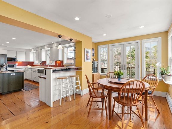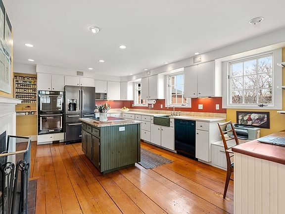 Location, location, location! Charming 1850 antique in the heart of the historic district on a tranquil side street surrounded by several other historic properties. Enjoy nearby Crocker Park, the harbor, shops and restaurants. The living room and dining room are adjacent to a large eat in kitchen, with fireplace, wet bar and access to a deck overlooking the yard below--creating a wonderful place to gather with family and friends. The second floor offers 2 bedrooms with ensuite bathrooms. The primary bath has a relaxing sitting area, jacuzzi, double sinks, shower and access to a deck and spiral staircase to an office above. The third-floor bedroom and full bath are adjacent to a multipurpose room, currently used as a music room, and access to the office with peeks of the harbor. The lower-level family room or library features custom cherry bookcases, a ¾ bath, workshop and access to a covered patio, the beautiful yard, garden shed and parking. Downtown living at its best!!