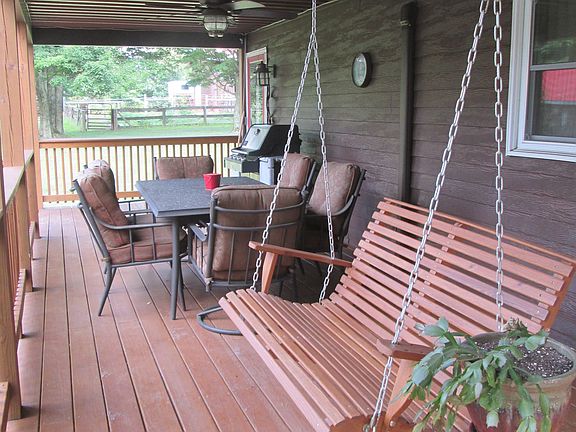 Three bedroom, two bath ranch home on five acres. Nice one acre fenced in yard with a garden and plenty of room for children and animals to play. Plus three acres of pasture surround the yard and house. Four-stall barn with frost-free water, under roof parking, feed room and plenty of storage above. There is a second driveway to the barn with an additional parking lot. Three car detached garage near the house. The interior design of our ranch home is great. It is easy and efficient to cool and heat. We have a wall unit for cooling and three heat sources to choose from: oil, wood, and a wall unit. We have a Generac standby generator. The kitchen has custom tile and cabinets and stainless steel appliances. The walkout basement is finished with a laundry room, full bath, a bar, and living area. We have a large, wrap around porch that is all under roof with a great view of the pasture. Recently appraised for $238,000. Selling at $235,000! Nice, quiet neighborhood just out of town. Close to the Benton Rodeo grounds and indoor/outdoor arena facilities. Also close to many areas for trail riding. There is a grocery store, gas stations, antique shops and a variety of family-owned restaurants with great food and friendly people only five minutes away.